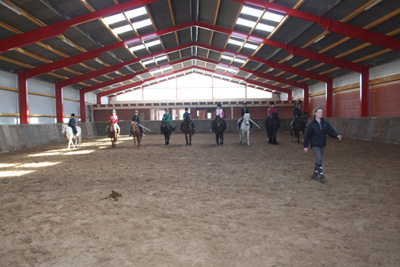 Die Reithalle ist insgesamt 54 m lang und 22 m breit. Das Hufschlagmaß beträgt 20 m x 40 m. In der Halle befindet sich ein Aufenthaltsraum mit Blick auf die Reitbahn, Toiletten, eine große Sattelkammer und eine Treppe zur Empore. Von dort hat man einen direkten Blick in die Reithalle.