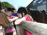 | An einem schönen Wochenende im Mai 2011 unternahmen neun Mädchen im Rahmen der AG Reiten einen Ausflug ins Moor in Tannenhausen. Pferde und Reiterinnen hatten vermutlich gleich viel Freude daran. Unterwegs wurde ein Picknick veranstaltet und Mädchen und Pferde verbrachten eine angenehme Pause bei sonnigem Wetter. Auf dem Rückweg waren sich alle einig: "So etwas wollen wir noch einmal erleben!" | ||
