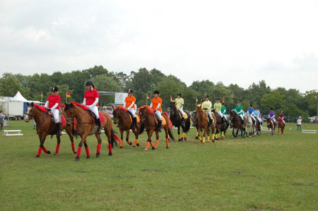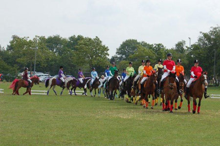 | Reitschüler des Reiterhofs "Kleine Mücke" zeigen auf der Weser-Ems-Ausstellung eine Dressur-Quadrille mit 18 Pferden | ||
